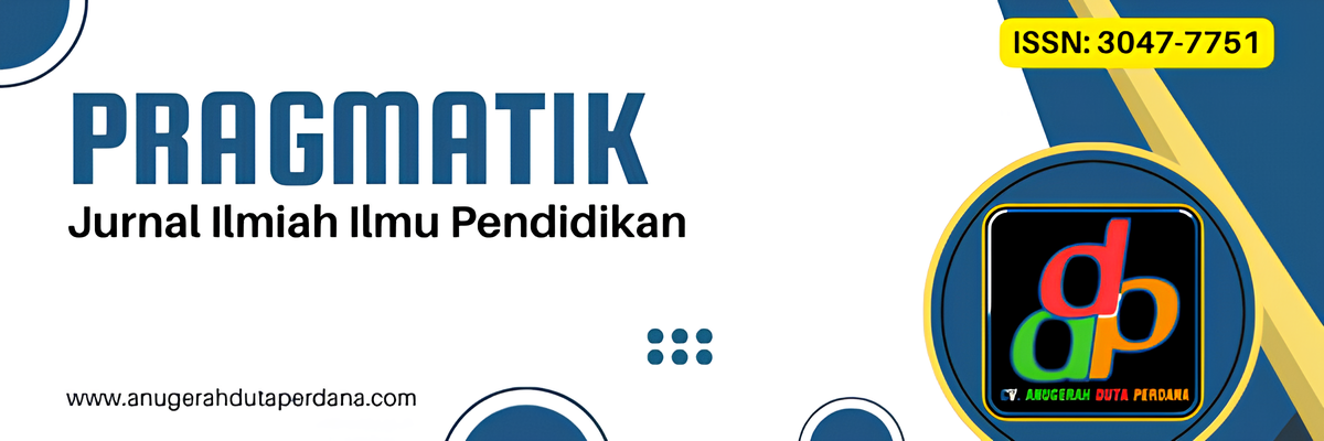Pragmatik: Jurnal Ilmiah Ilmu Pendidikan adalah jurnal ilmiah yang diterbitkan oleh CV. Anugerah Duta Perdana bekerja sama dengan beberapa perguruan tinggi di Indonesia. Pragmatik: Jurnal Ilmiah Ilmu Pendidikan akan terbit 2 (dua) kali dalam setahun, pada periode Maret - Agustus dan September dan Februari. Artikel dapat ditulis dalam bahasa Indonesia atau bahasa Inggris. artikel merupakan hasil penelitian asli dengan maksimal plagiarisme 25%. Artikel yang dikirimkan ke Pragmatik: Jurnal Ilmiah Ilmu Pendidikan akan direview oleh minimal 2 (dua) reviewer. Artikel yang dikirimkan harus memenuhi kriteria penilaian dan sesuai dengan petunjuk dan template yang disediakan oleh Pragmatik: Jurnal Ilmiah Ilmu Pendidikan. Penulis harus mengunggah Pernyataan Hak Intelektual / Hak Cipta saat mengirimkan naskah. Artikel harus diserahkan melalui Open Journal System (OJS) dalam format .doc atau .docx. Pragmatik: Jurnal Ilmiah Ilmu Pendidikanterdaftar di dengan Nomor International Standard Serial Number (ISSN) Online: 3047-7751. Secara umum fokus dan ruang lingkup Jurnal bidang Ilmu Pendidikan dapat mencakup berbagai topik yang berkaitan.
